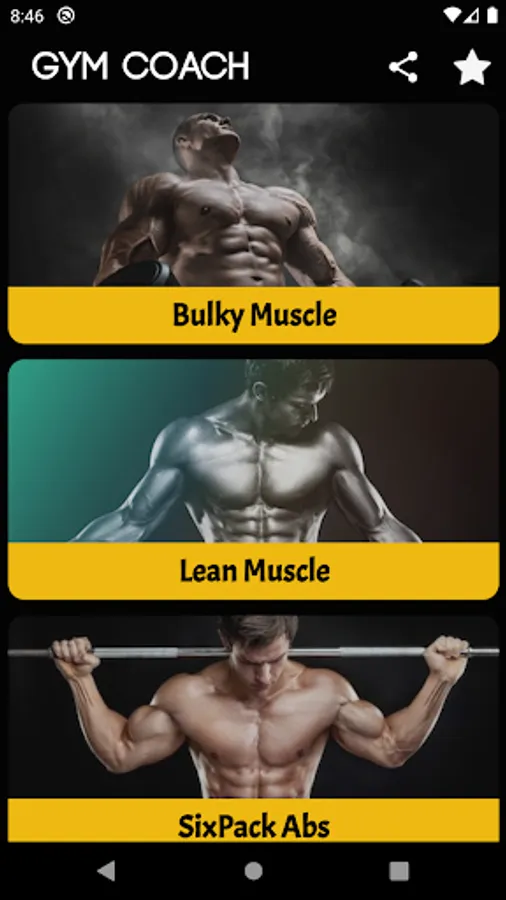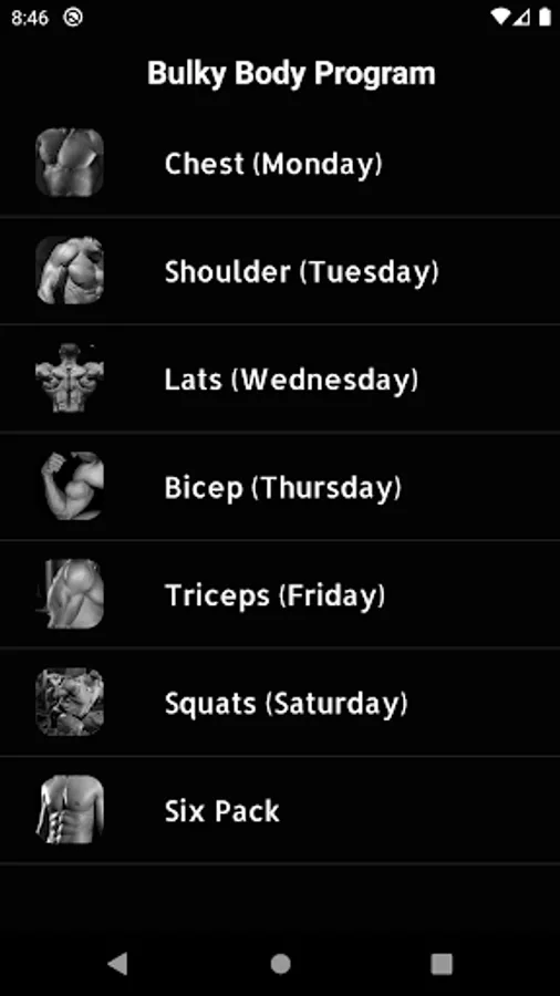1. Bulky Body: If you want to become bulky with big muscles, you can go with this category. This category contains various types of workouts. Each and every workout is represented in Image.