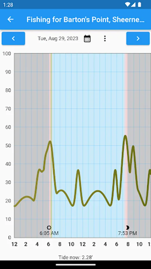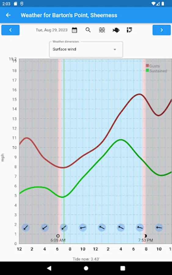 • Fishing activity, combining weather, tides, sun/moon and other information to tell you the best time to fish