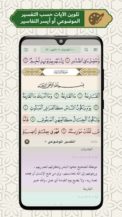 - إمكانية كتابة الملاحظات النصية على الآيات