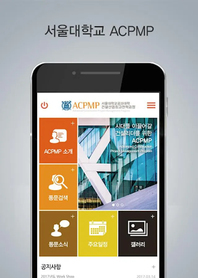 The mobile organizer application that can be viewed ACPMP chongdongchanghoe Seoul National University Alumni News and Information and Operations Committee.