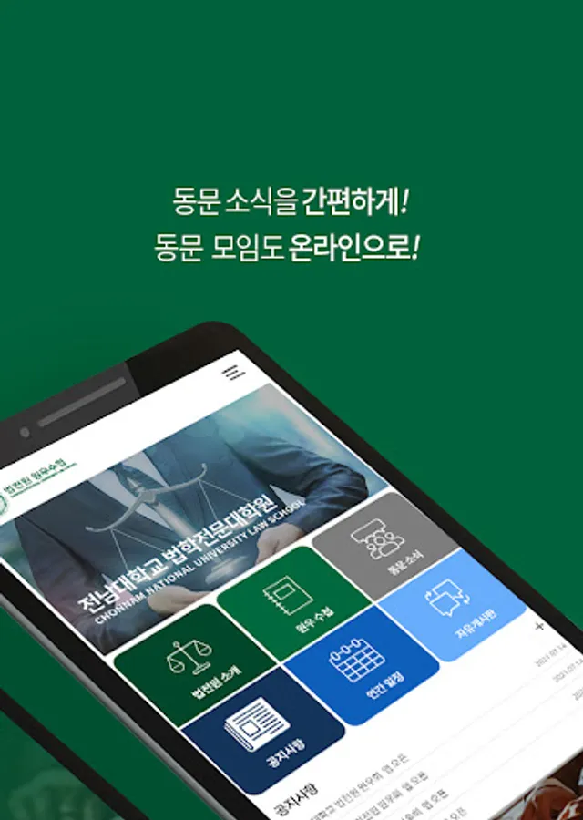Chonnam National University Law School is available only for alumni/alumni/faculty staff, and all data used in the mobile notebook is directly managed by the Chonnam National University Law School Student Council.