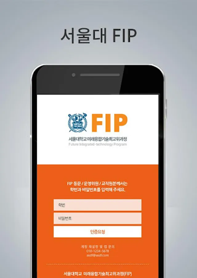 본 어플리케이션과 관련하여 문의사항 있으시면 FIP 행정실로 연락주시기 바랍니다. 감사합니다.