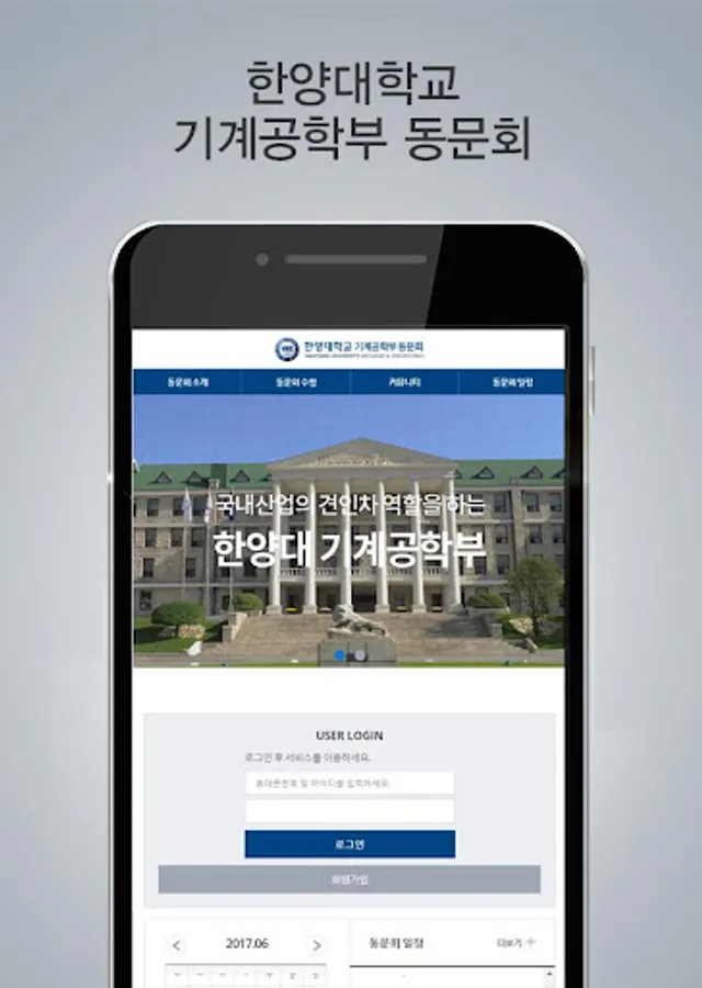The mobile organizer application that can be viewed include Mechanical Engineering, Hanyang University alumni news and information and the Steering Committee.