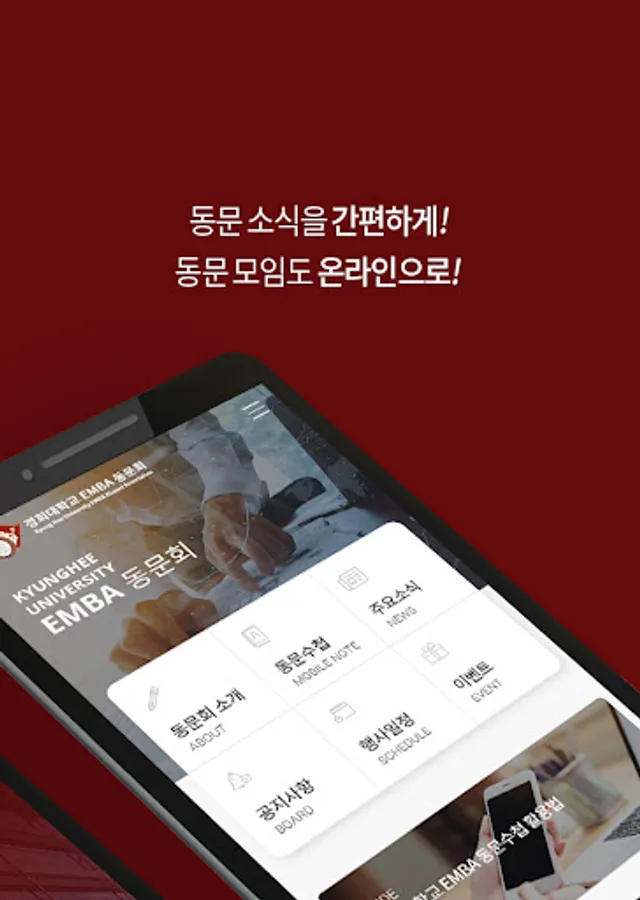It is an alumni association mobile notebook for EMBA alumni of Kyunghee University Business School.