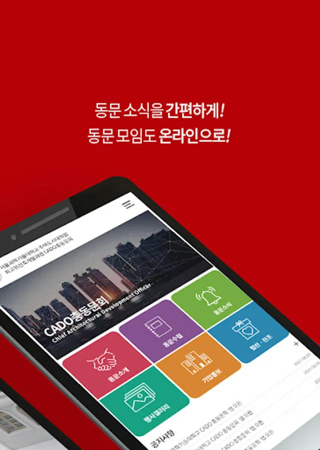 Seoul National University of Science and Technology, Graduate School of Housing and Urbanism, the highest architectural development course CADO Alumni Association notices and mobile notebook application that allows you to read information and news of alumni.