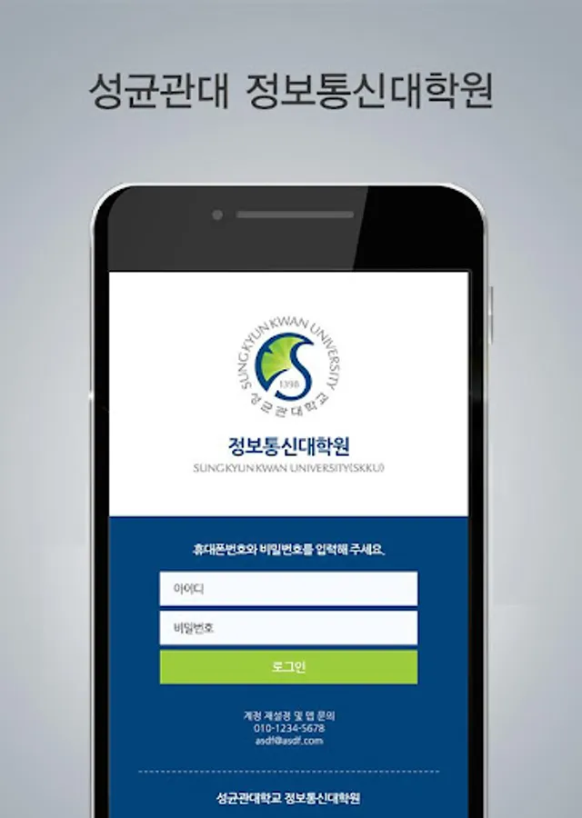 본 앱과 관련하여 문의사항 있으시면 성균관대학교 정보통신대학원 동문회 운영진으로 연락 주시기 바랍니다. 감사합니다.