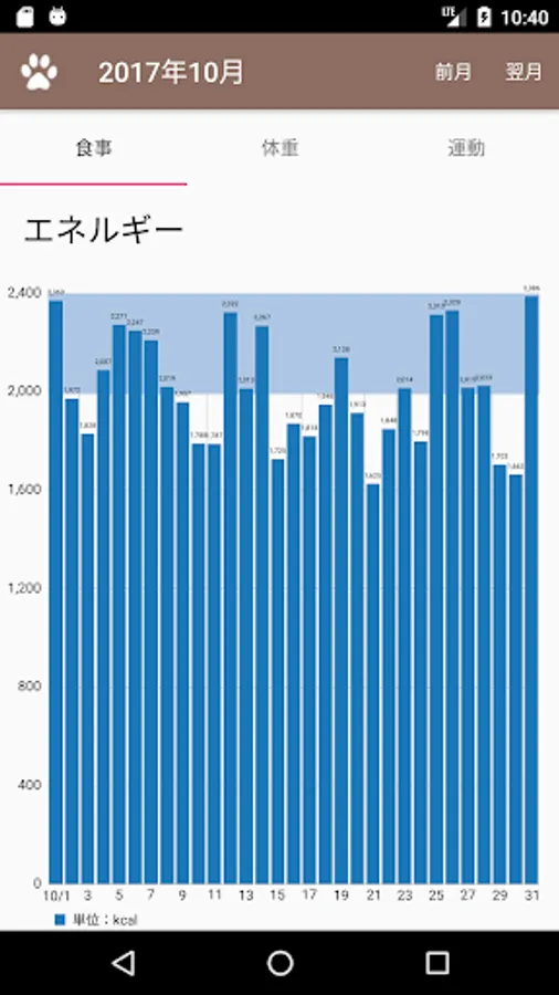 You need to assign such as age and weight, and can be compared to the Food Guide, a meal that I ate in one day. It can also be seen in the graph the amount that you eat the last one month, you can check the balance of the meal.