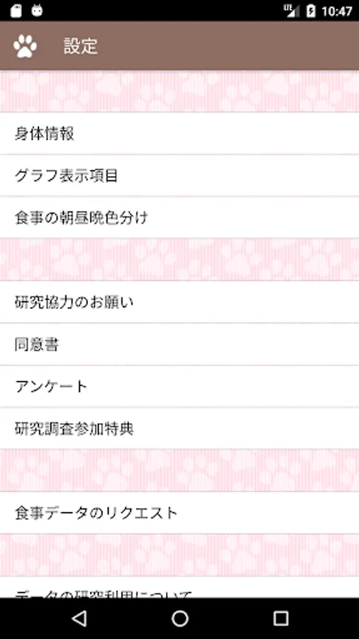 This app is one that was created as part of the research for the development of health promotion tool that is based on evidence. We plan for the development of the future, I am allowed to use the diet study data of the person to have agreed.