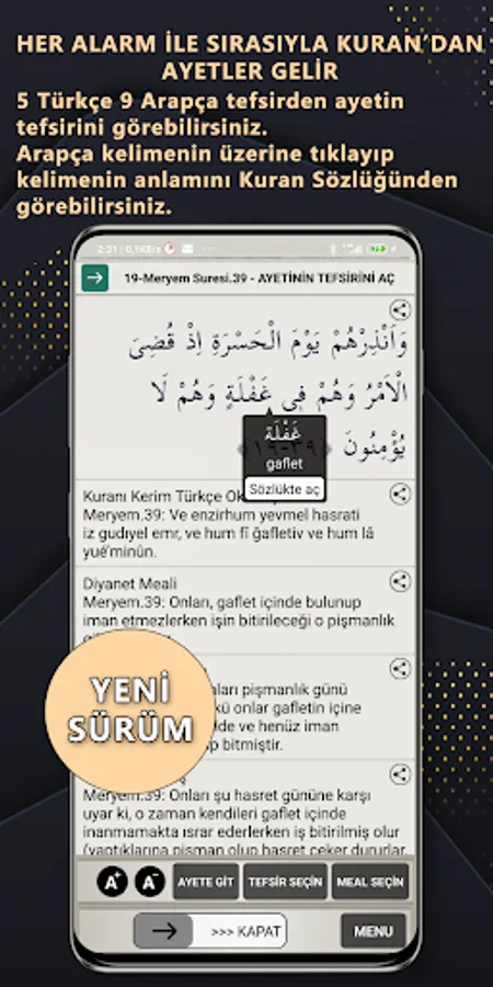 - Display a verse from the Holy Quran on the screen during the warning, respectively.