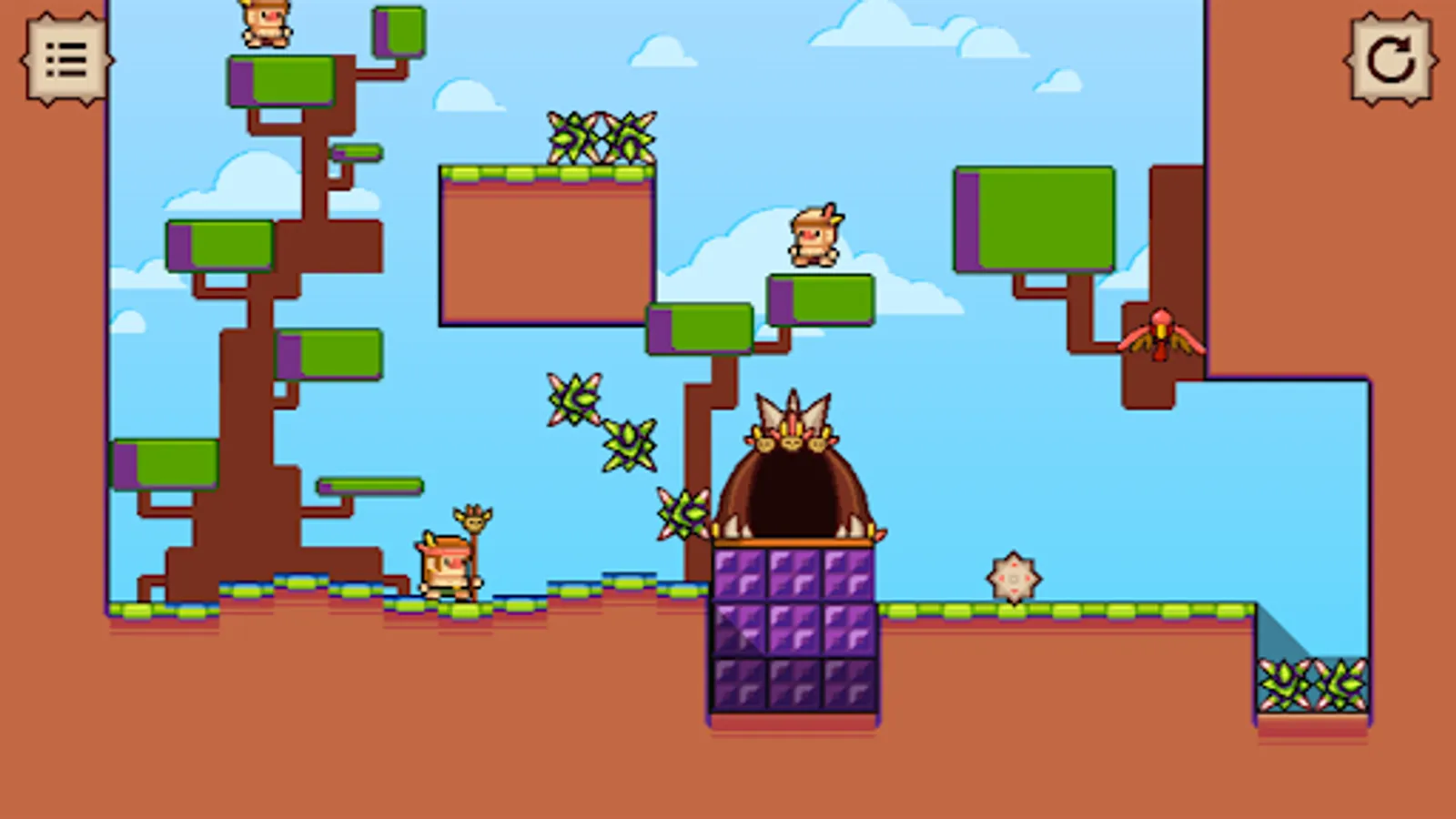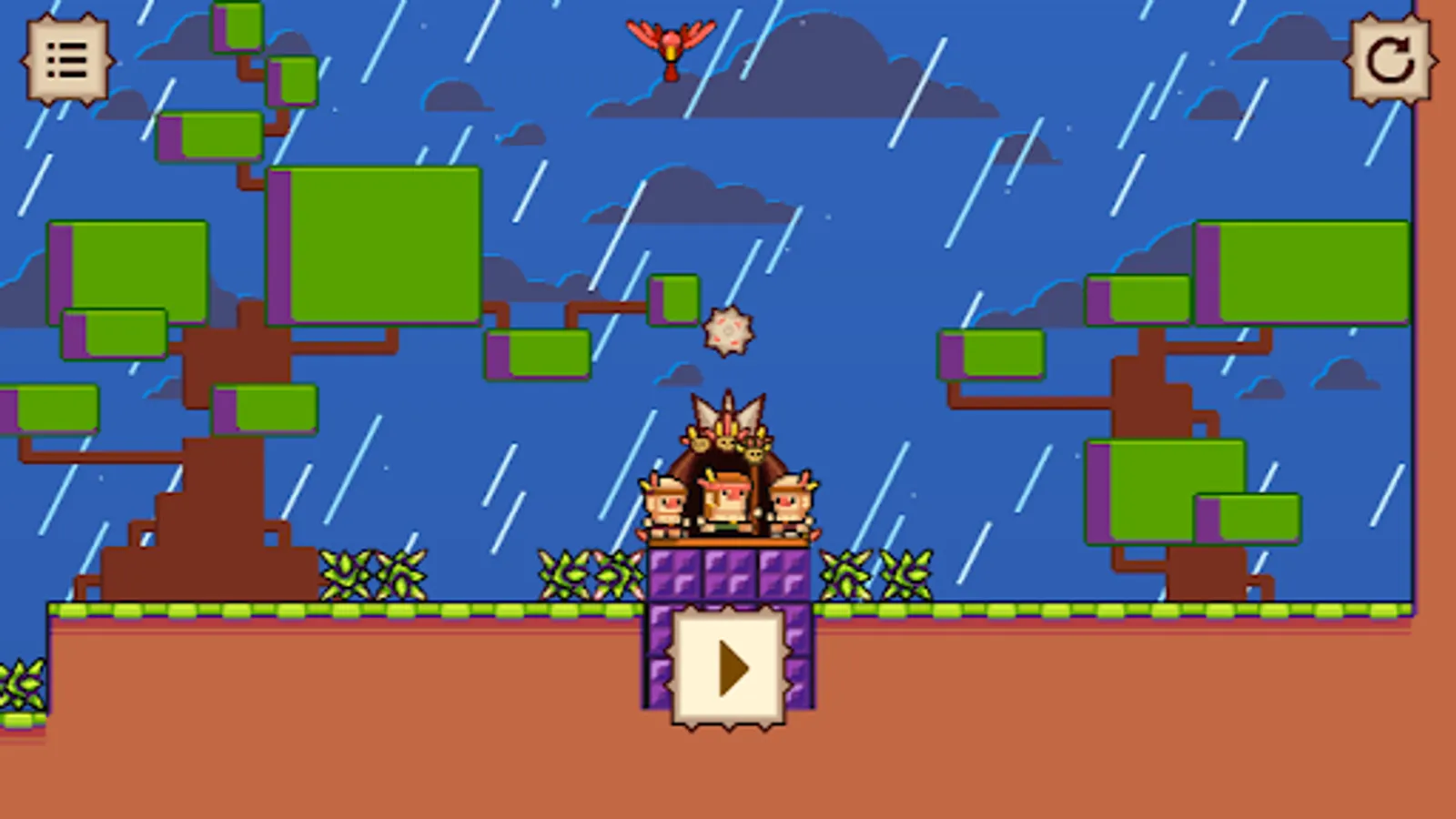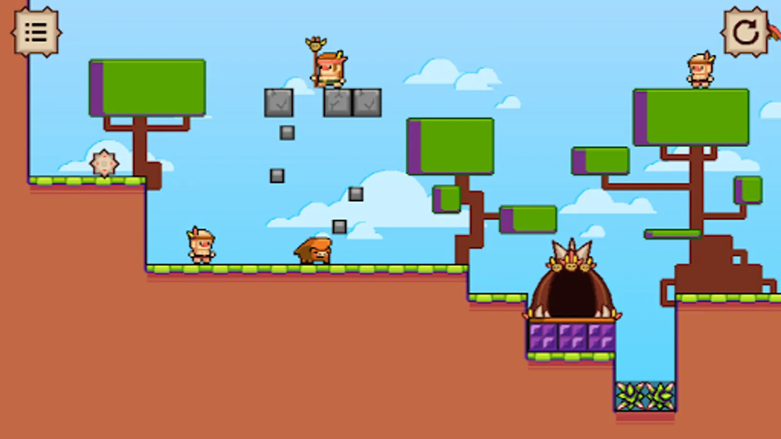 Hefty Shaman is a puzzle-platformer where you can create shockwaves on the ground and interact uniquely with enemies and traps around you. Being hefty is cool, especially for this Shaman who uses this "power" to generate waves on the ground while attempting to reunite the tribe and deliver the rain-stone to the altar.