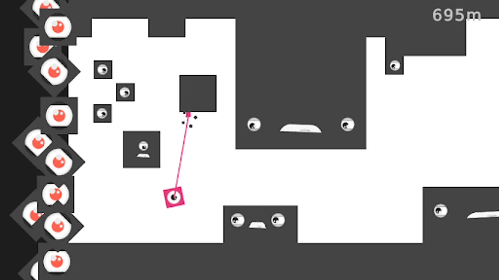 You can hook yourself at the the ceiling by tapping the screen and hold down.