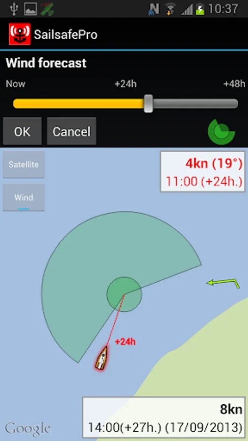 - Wind forecast included (48h). You will be warned if the boat is expected to be out of the security zone due to a wind change.