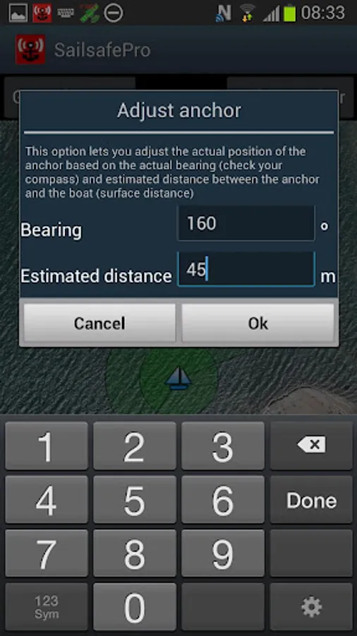 - Once the alarm is set, you can adjust the anchor position in case it is not correct. Just indicate the actual bearing (read it from the compass) and estimated distance between the ship and the anchor (surface distance).