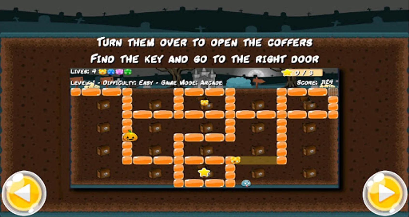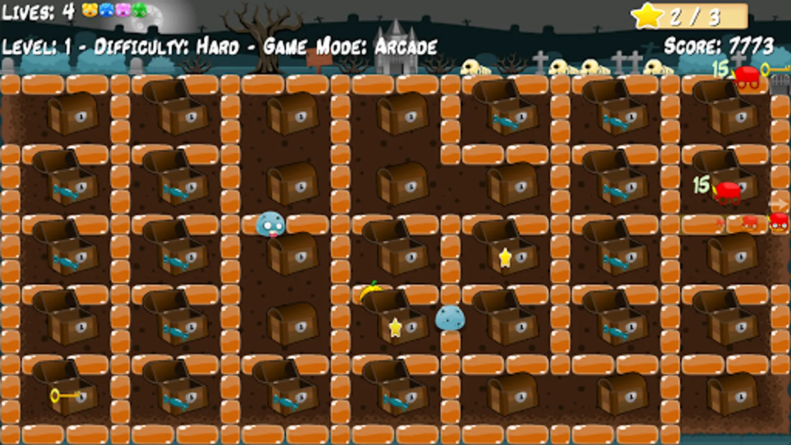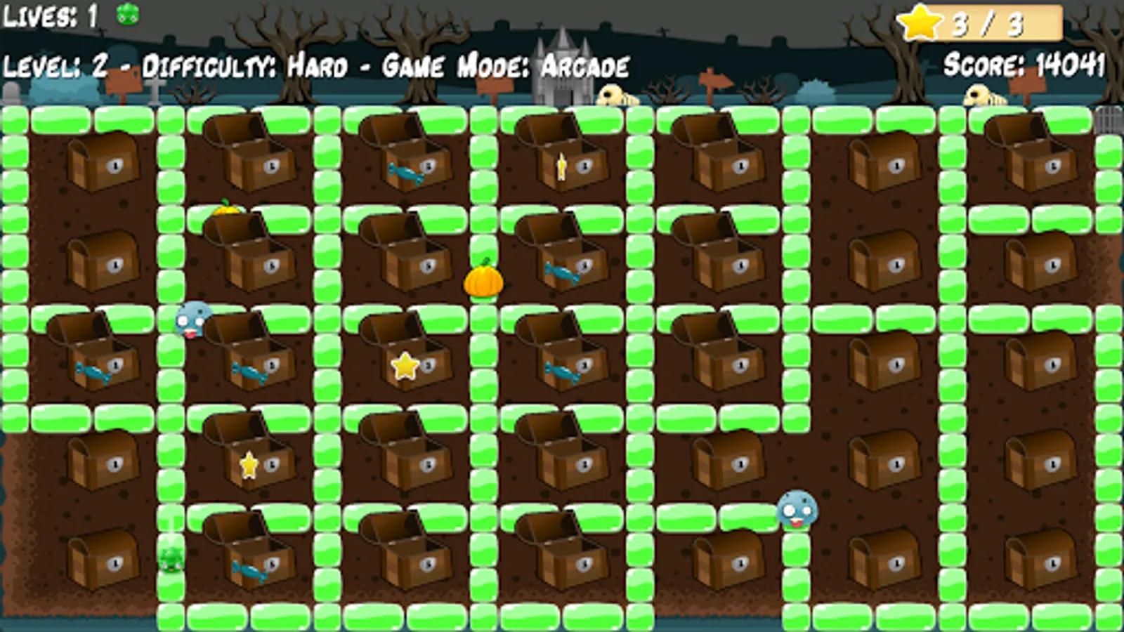 Three game modes Survival (one life), Arcade (4 lives) and Online (online multiplayer game up to 4 players).