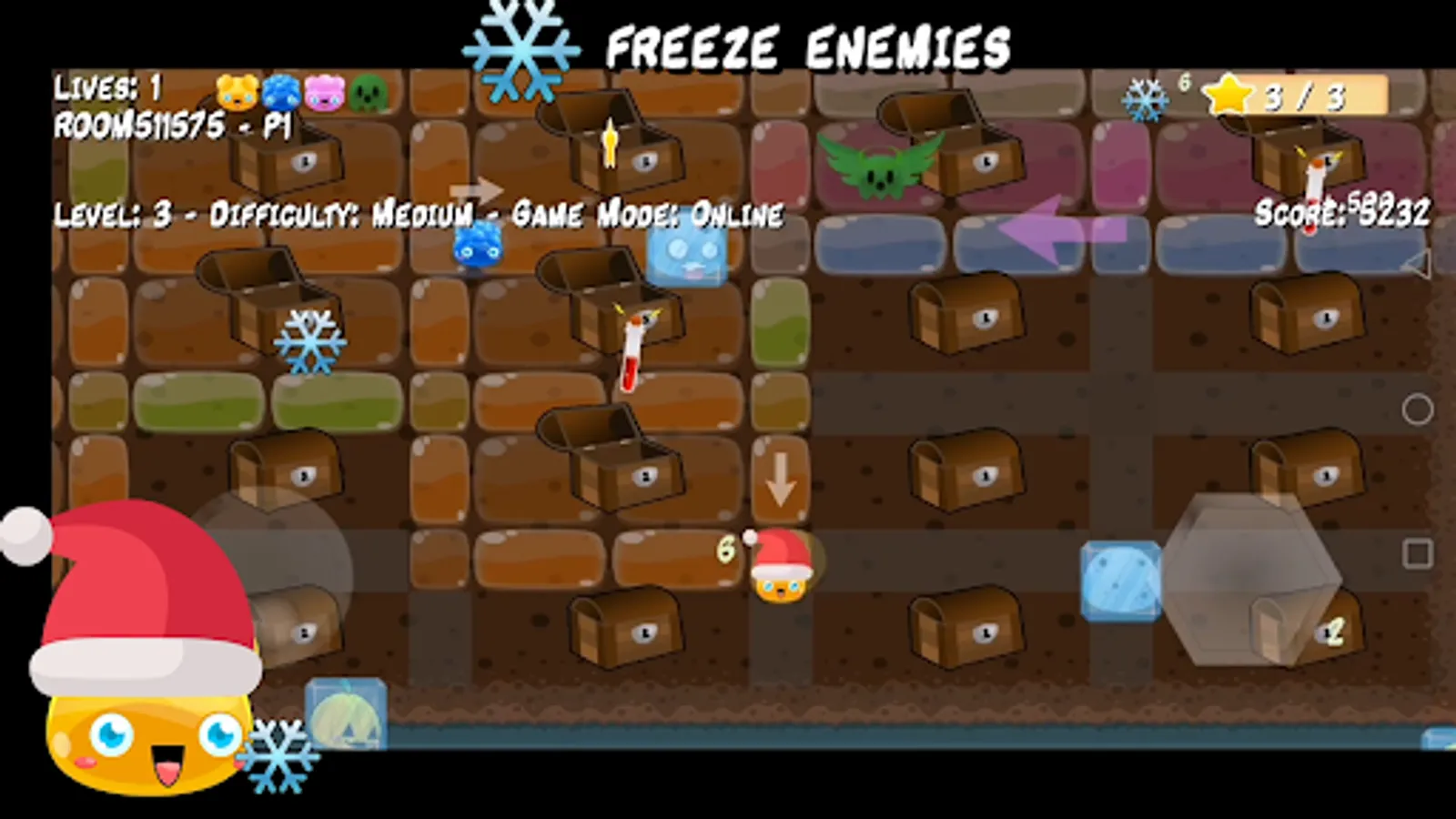 Create your own game room (private or public). Share the game room with your friends or participate in one of the public game rooms. Choose your JellySquad member and get ready to collaborate and get through each of the levels towards the goal: saving the children who were kidnapped from Jelly Village.