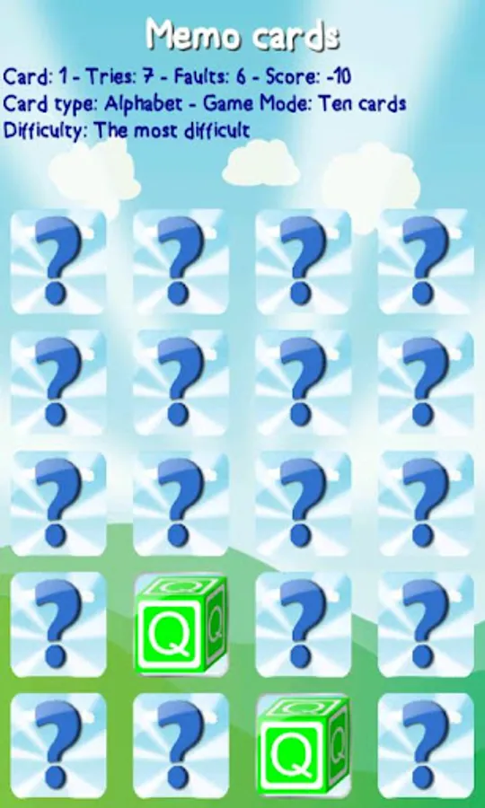 - Levels Rows x Columns: 3x2, 3x3, 4x3, 4x4, 5x4, 5x5, 6x5 y 6x6.