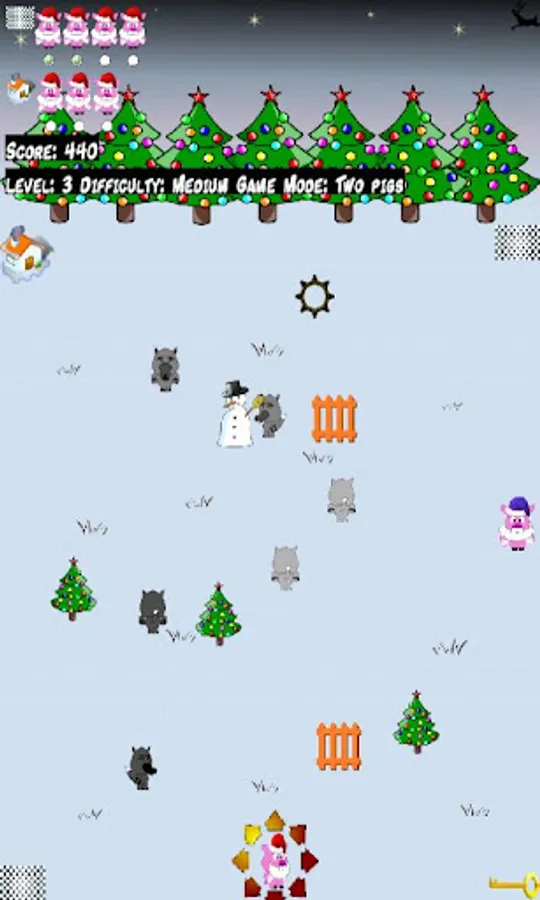 Leads the pigs to home. Catch the key and watch out for wolves.