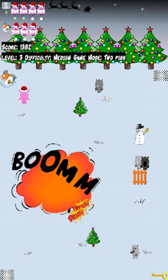 Three game modes. Catch the key (one pig), two pigs and three pigs.