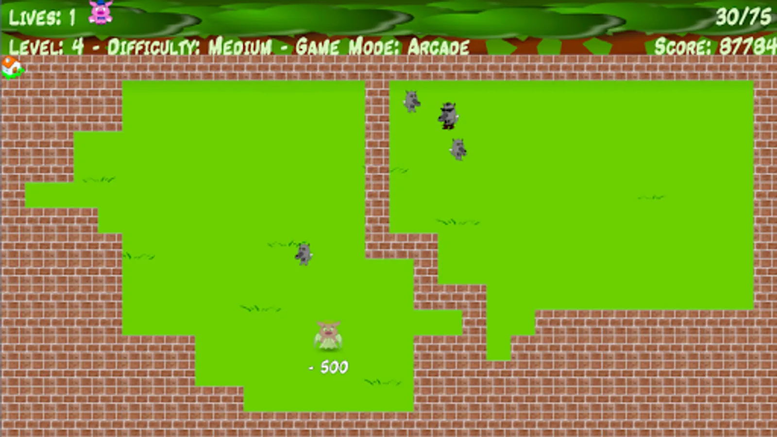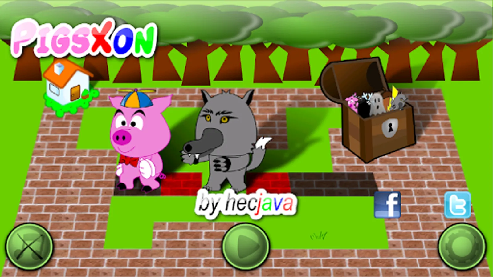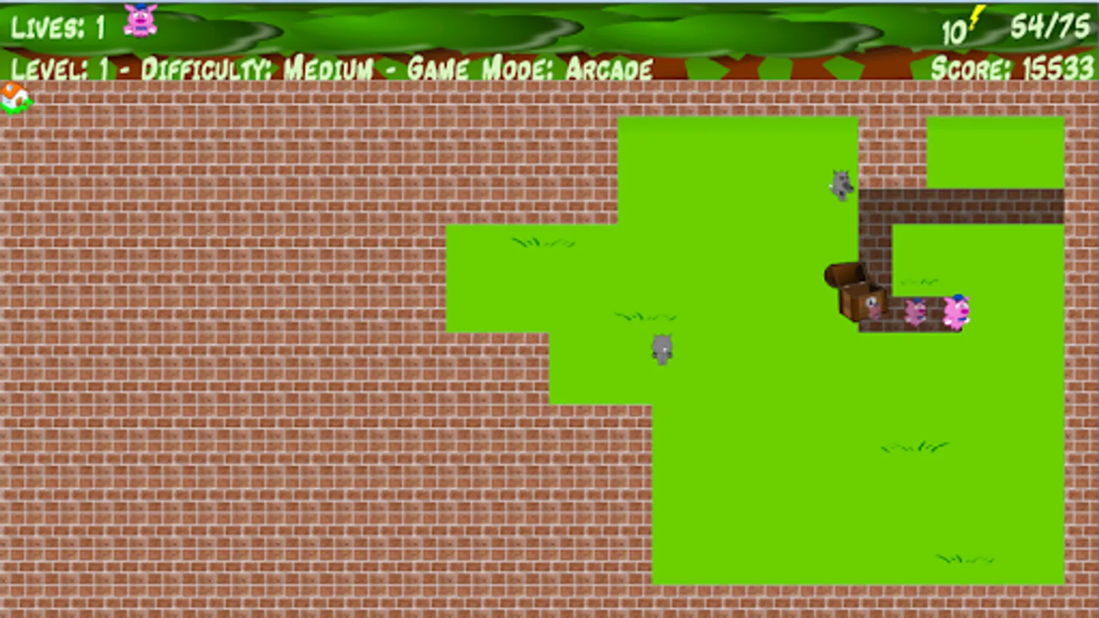 Two game modes. Survival (one life), Arcade (the three little pigs).