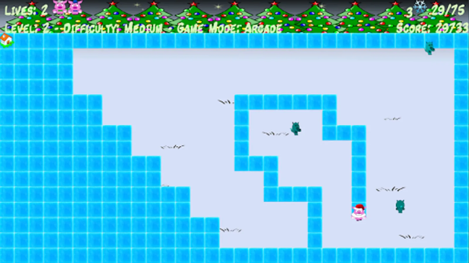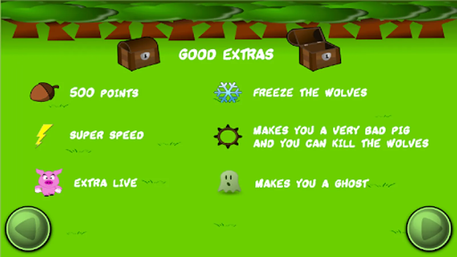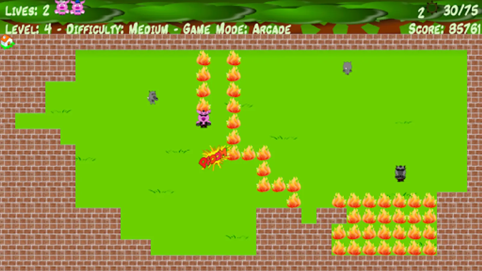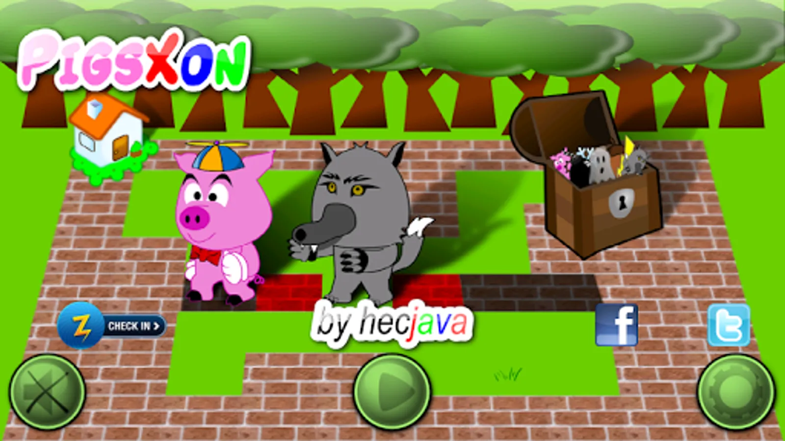 Two game modes. Survival (one life), Arcade (the three little pigs).