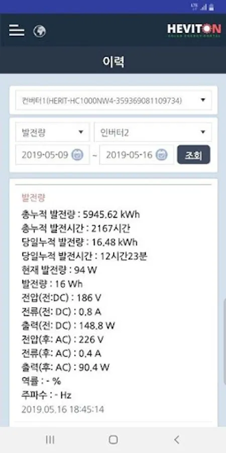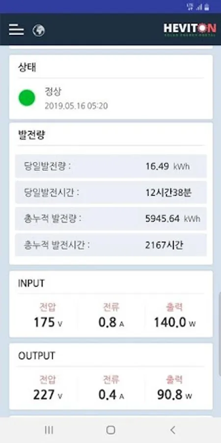 • It shows current generation, today's generation, this month's generation and total cumulative generation.
