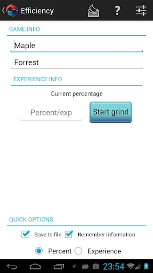 Enter your current exp percent or experience amount. Grind for a few minutes and enter your then percent/amount. You'll get your experience per minute number! Save it if you want and see your last runs, compare the best grinding spots.