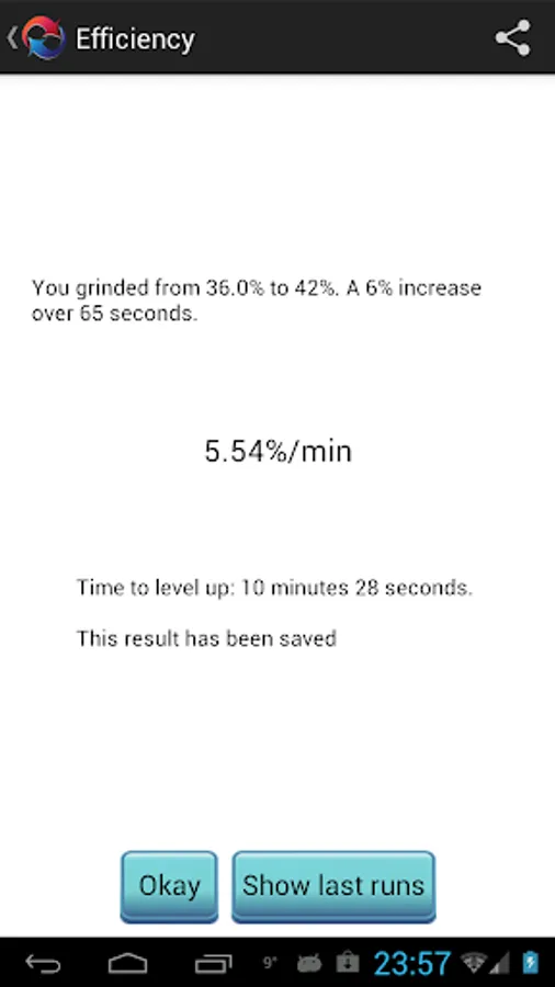 * Efficiency test : How fast do you grind and how long till you level up?