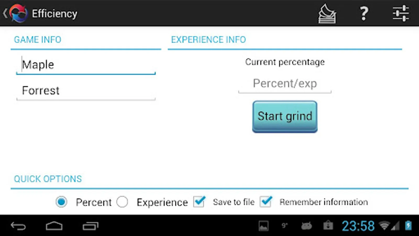 Perfect for games that require a lot of grinding, games such as: MapleStory, Final Fantasy XI, Ultima Online, TERA, Rose Online, Lineage 2, EverQuest, Cabal Online, Free Realms, Ragnarok Online, Aion, RF Online, Runescape, Silkroad Online and many many more. This app fits all MMOs that use a leveling system!