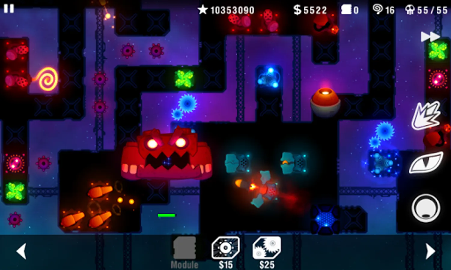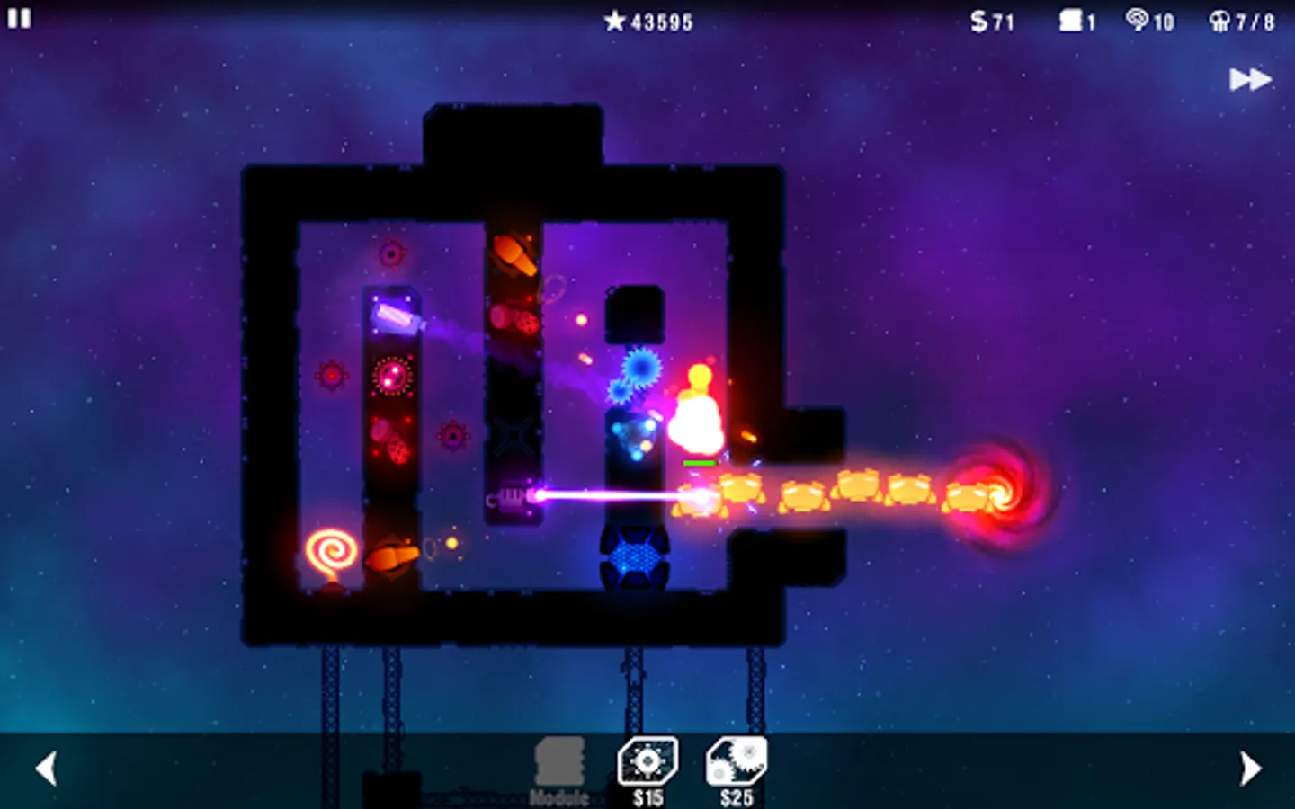Build your space fortress any way you wish, set up wide variety of weapons and traps and let the invasions begin!