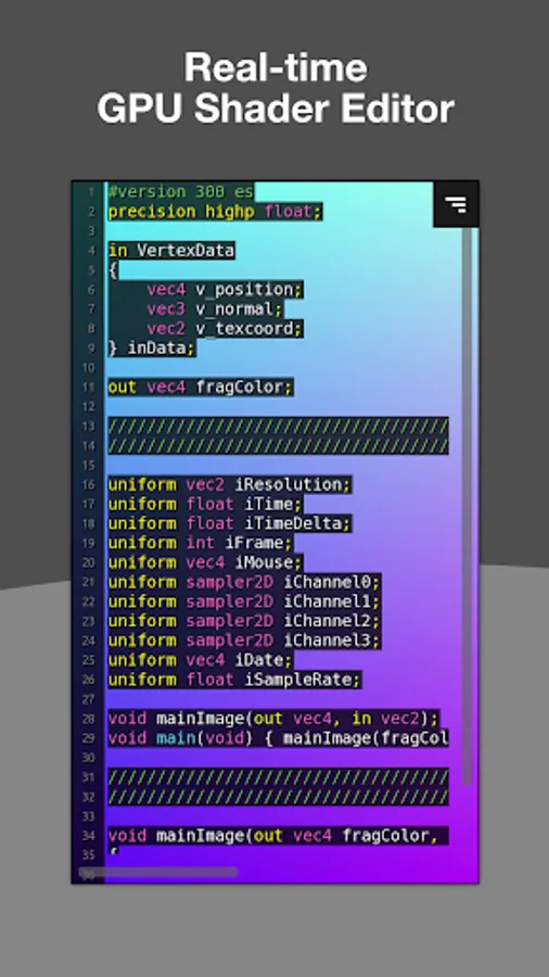 KodeLife supports all flavors of OpenGL GLSL supported by your device.