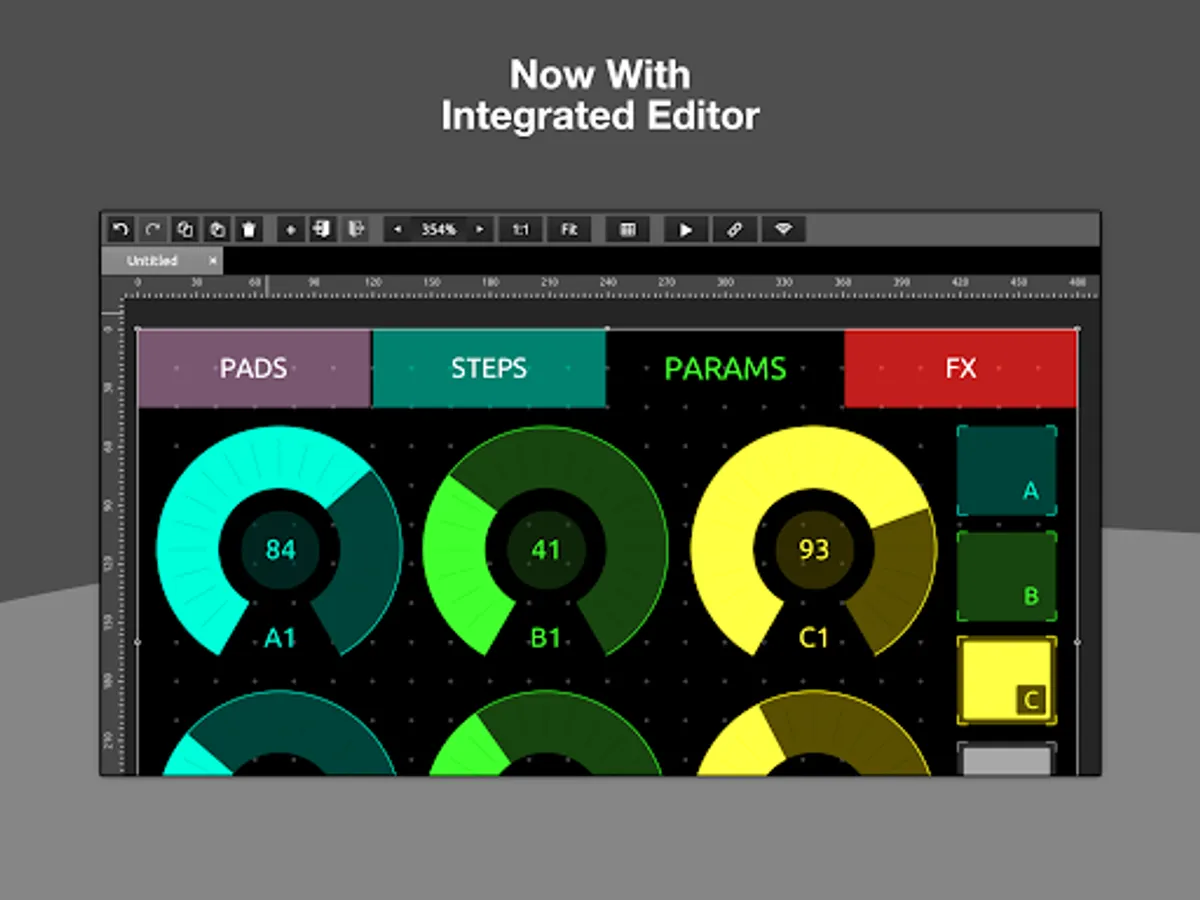 We've listened for the past 10 years and we've re-written the application from the ground up - with speed, features and usability in mind. A GPU-powered, fast and advanced integrated editor is part of TouchOSC on all platforms - create the most complex of control layouts with ease and precision.