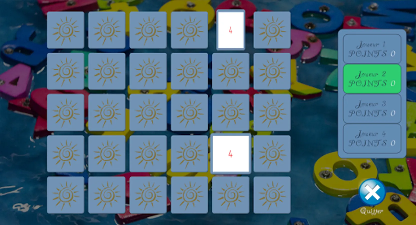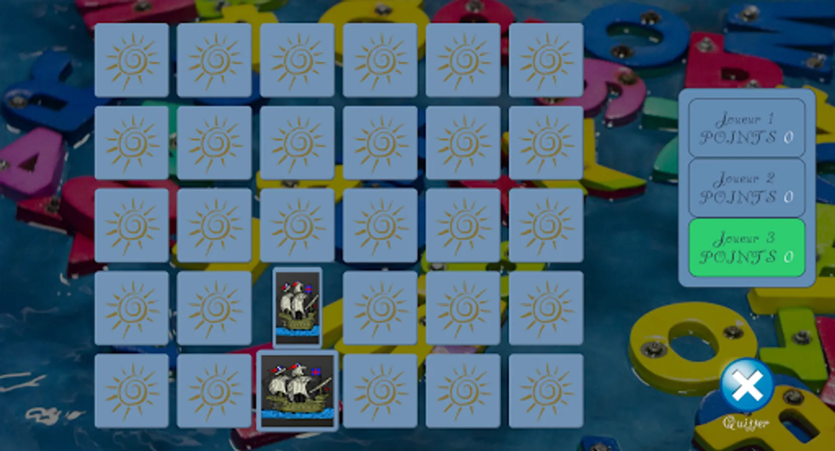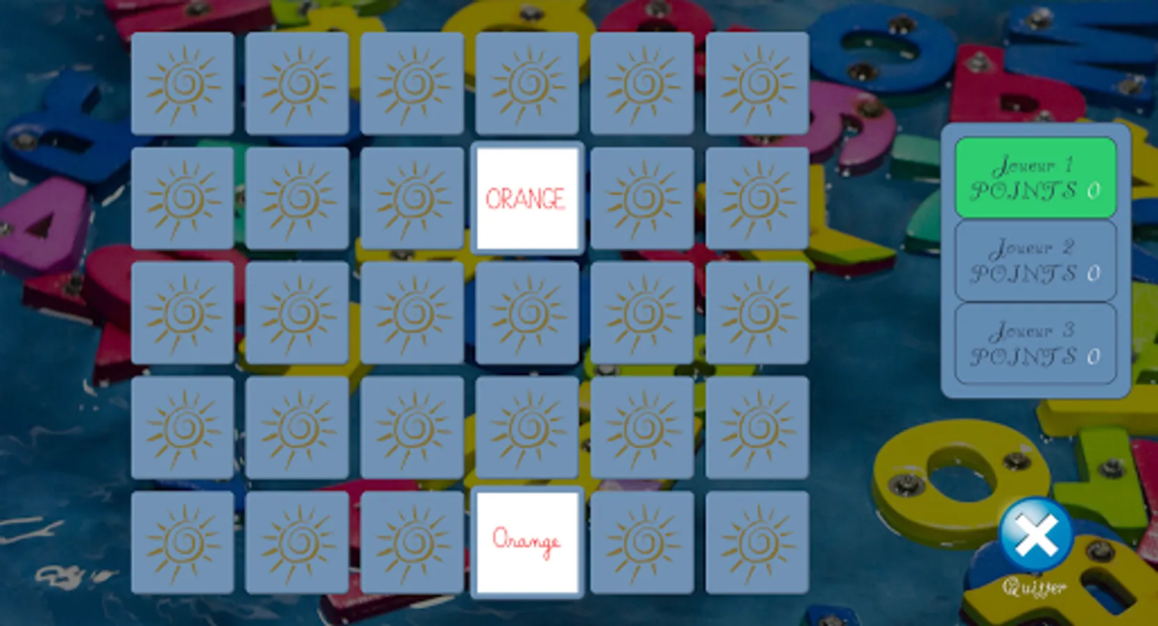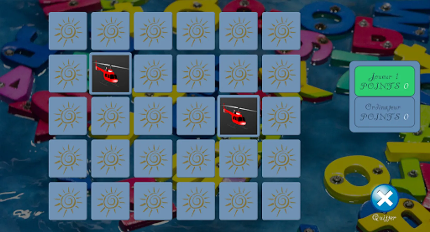Memory game that allows children to learn some basic reading, recognition of numbers from 0 to 100. This will require you to reconstruct pairs of images, syllables, letters written with different spellings, associate an image to a word.
