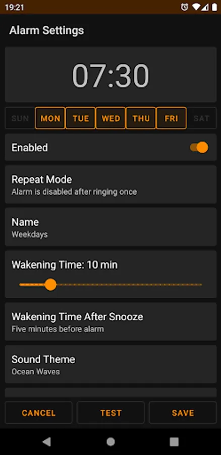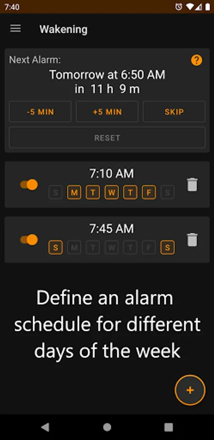 ● Dark theme: No need to stare at bright lights while setting your alarm