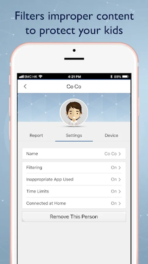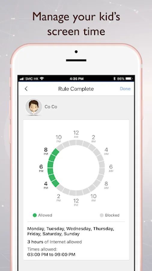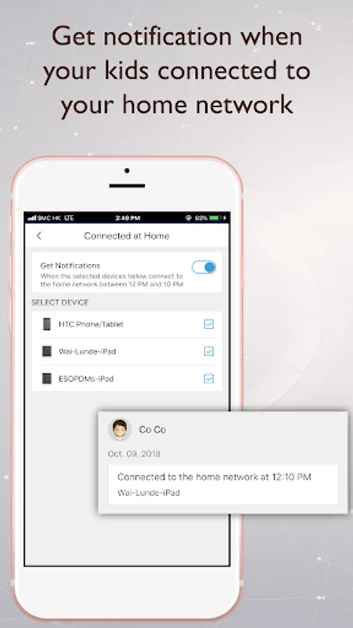 Through “HKBN HomeGuard - Parental Control”, parents now can easily manage and restrict a child’s Internet activity. The service allows parents to effectively block access to specific categories of websites, set time limits for going online, and much more. Even while parents are away from home, they can stay informed of their children’s internet activity through automated notifications and other reporting features on this mobile app.