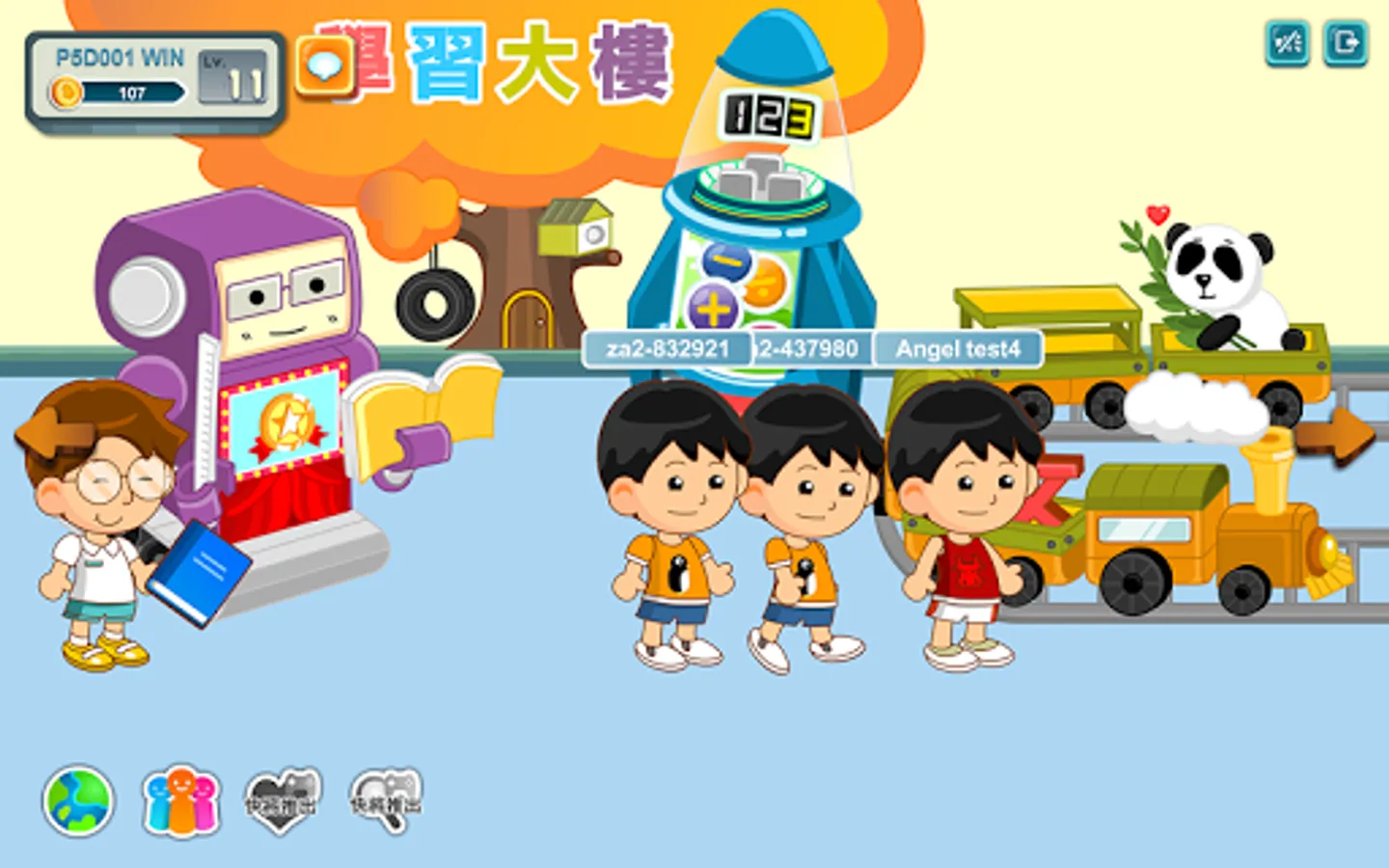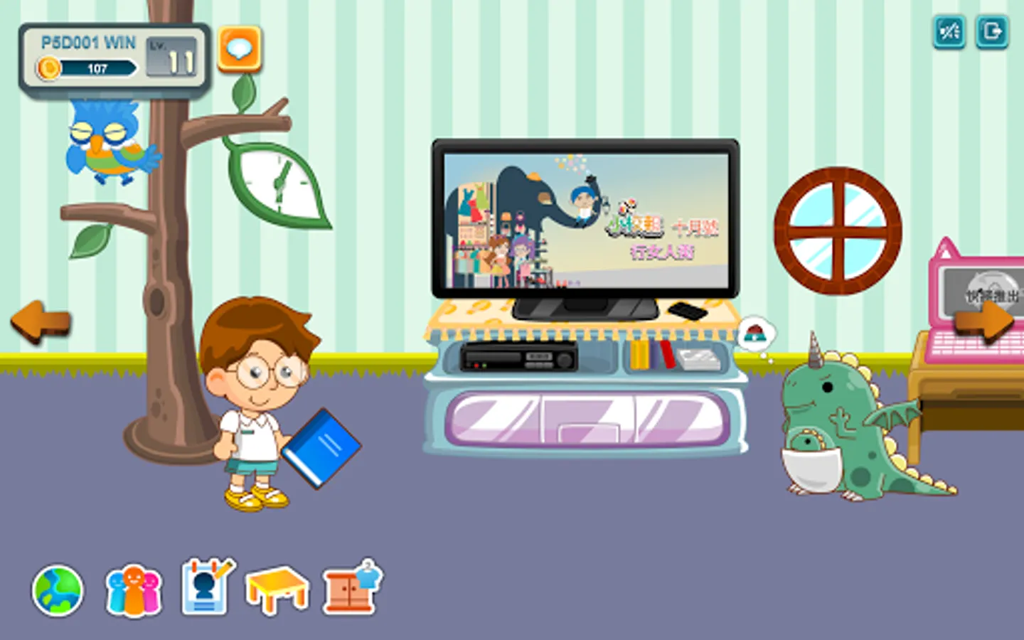 - Earn coins though playing learning games and completing tasks, and get various kinds of clothing, handheld items, furniture, wallpaper, etc. to customise your avatar and home.