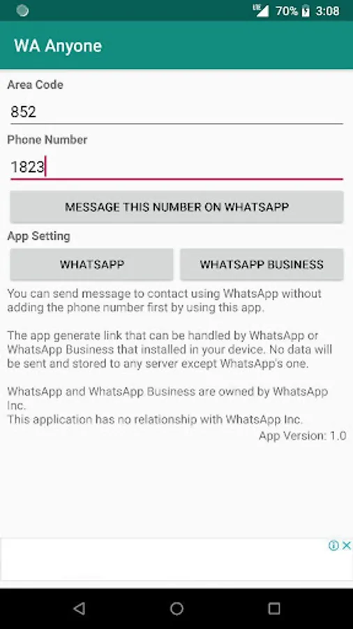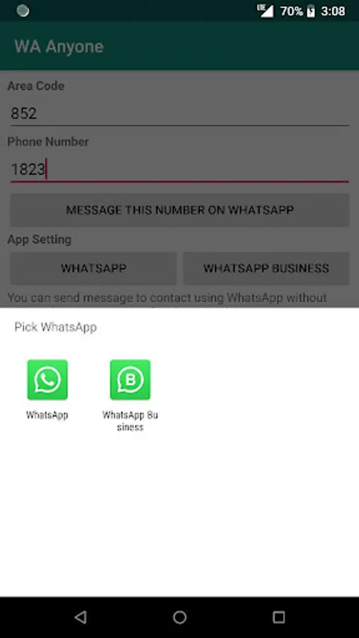 The app generate link that can be handled by WhatsApp or WhatsApp Business that installed in your device.
