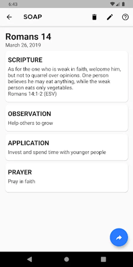 Daily SOAP aims to help people read and meditate the Bible and gives them easy access to personally discover the truth and beauty of God's Word.