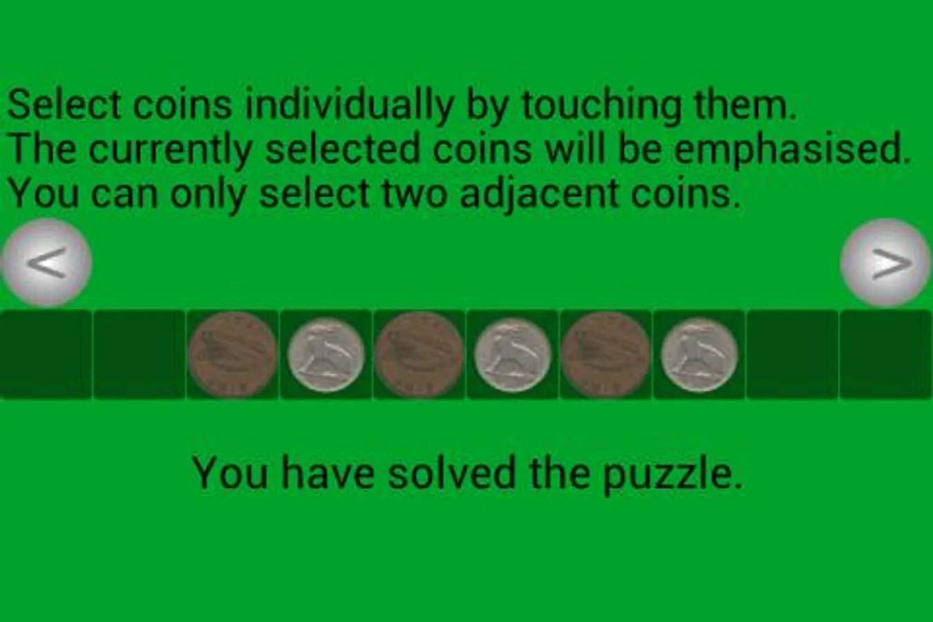 Moving two adjacent coins at a time arrange the six coins so that large and small ones alternate. You have three moves to do so.