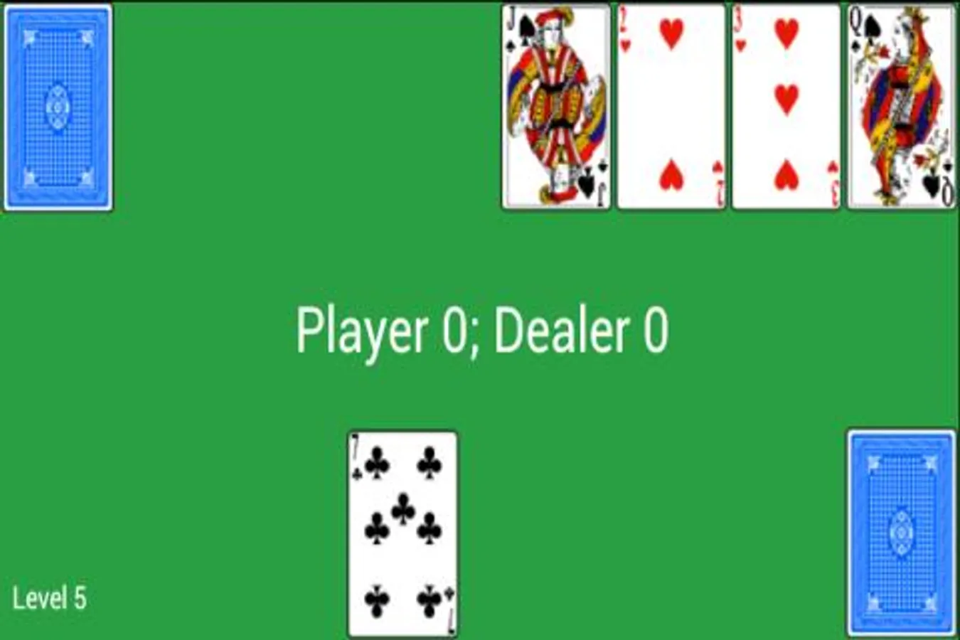 Each player is dealt thirteen cards. The phone is dealt all thirteen Clubs. You will be dealt a number of Hearts and Spades (all with different values), depending on the difficulty level you are playing at. Four of your cards will be dealt face up. The dealer will lay a card face up and to win a point you will have to beat this card using one of your face up cards. Only Hearts can win a point. You always lose the point when you play a Spade. The Ace is the most valuable card, followed by the King, then the Queen and so on to the two. At the easiest level you will be dealt thirteen Hearts. When you play at a difficulty level which results in you being dealt Spades they will replace the most valuable Hearts (e.g. if you are dealt two Spades then they will be the Ace and King and your most valuable Heart will be the Queen).