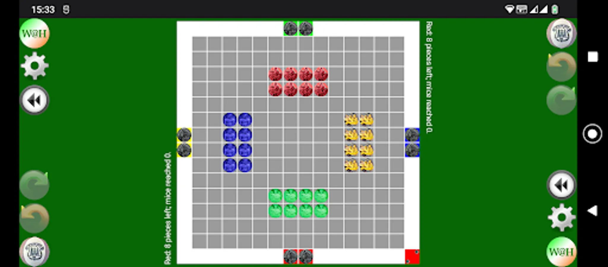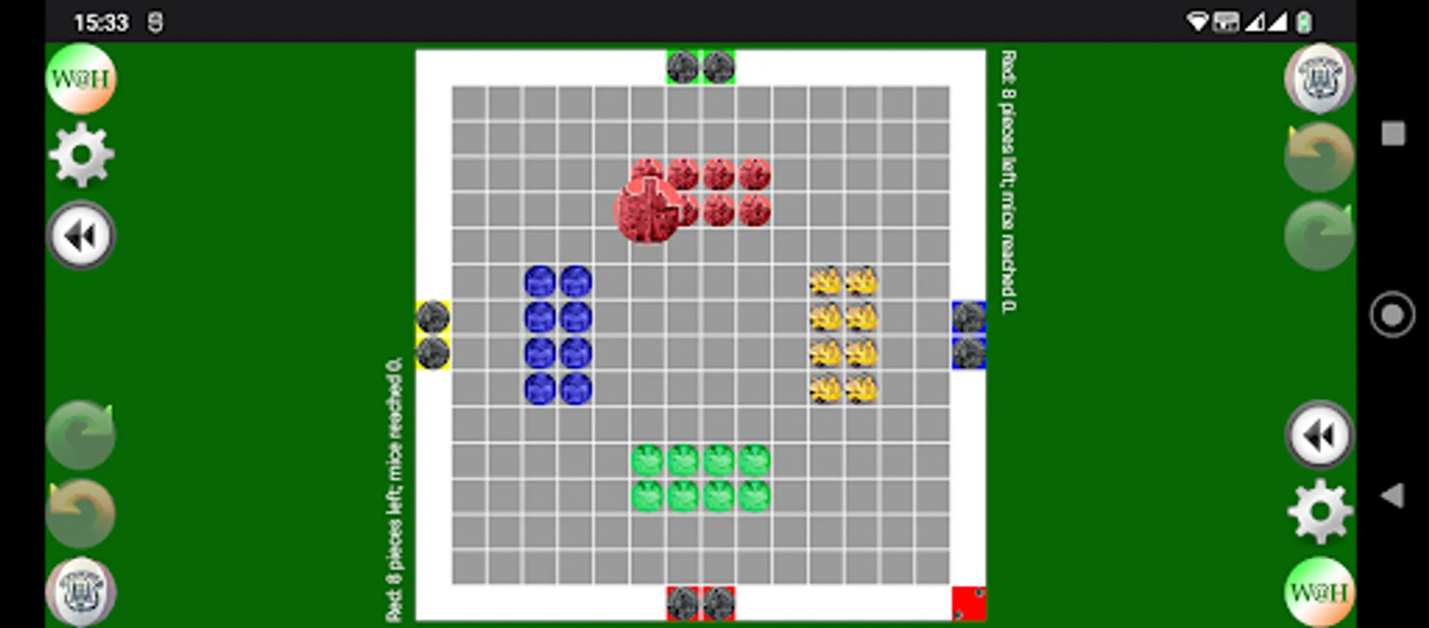 I’ve expanded the rules so that if all players except one lose all cats or have their single remaining cat on a mouse and thus not able to be moved that the player who can still make moves is deemed to have won.