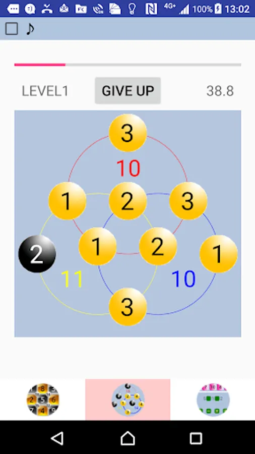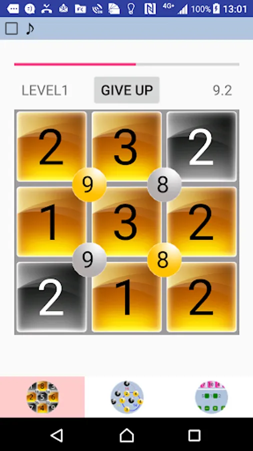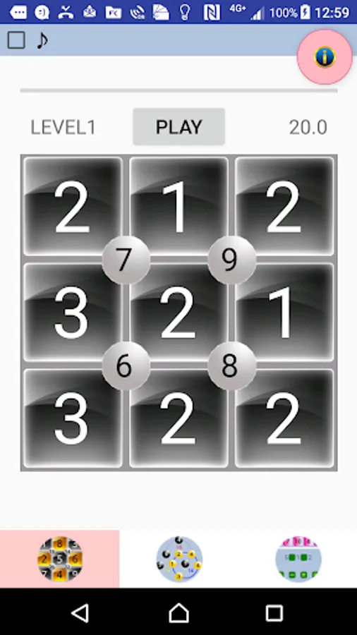 This is a math game where 9 cards are moved so that the total number of the 4 corner cards becomes a circled value.