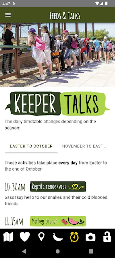 You can use our app to plan your visit, check the current Keeper Talks and Feed Times, and to get the lowdown on your favourite animals at the Haven, with photos, information and videos featuring our keepers in action.