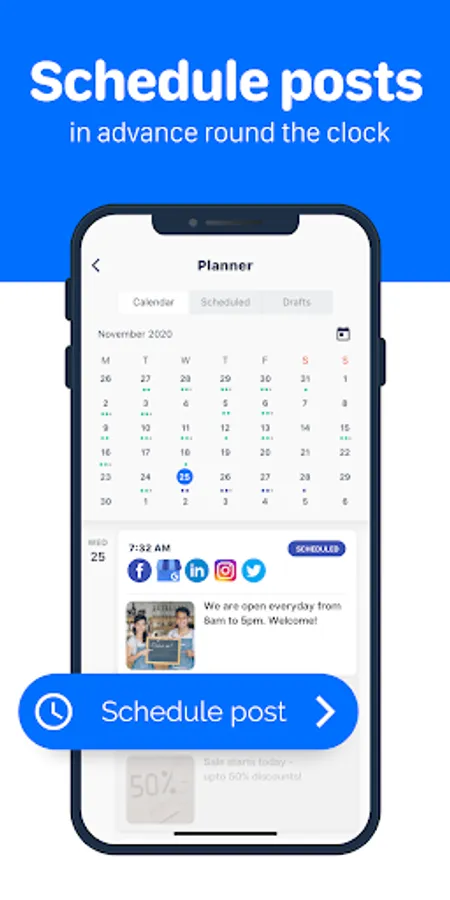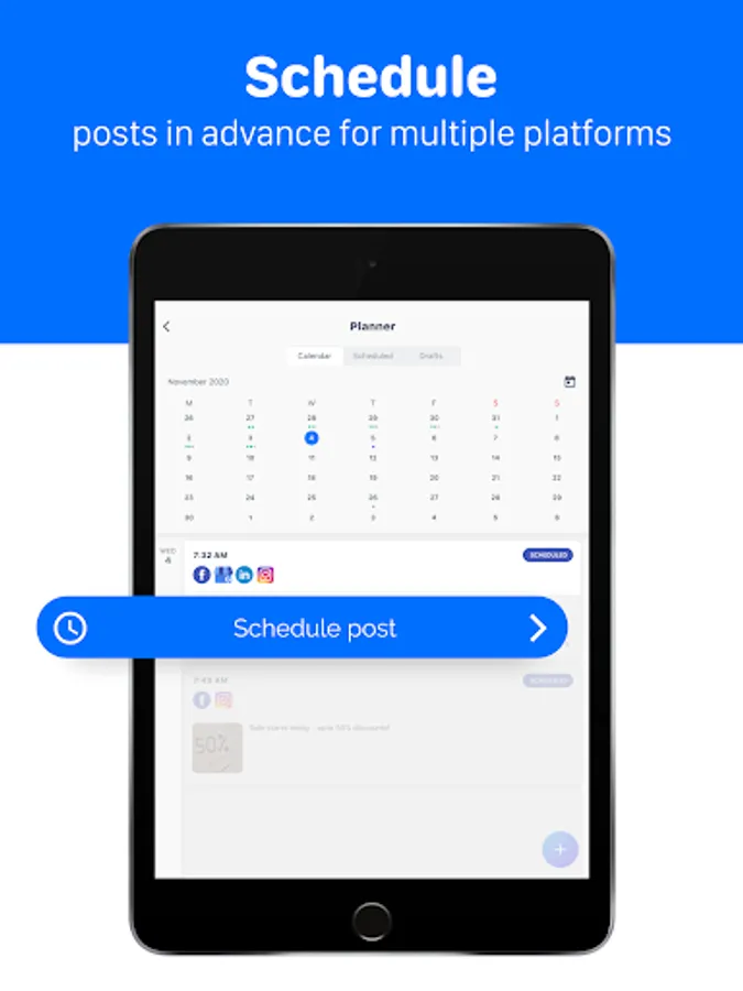 • Publish posts, images, videos, and Reels to multiple channels with one app