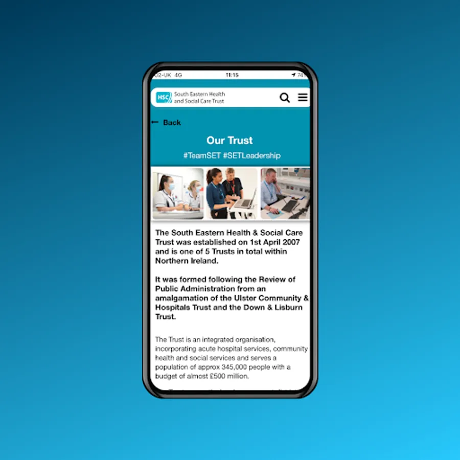 SET Connect is an app for staff of the South Eastern Health and Social Care Trust. It is designed to help you find your way around the organisation, have your say, stay in touch with recent news and receive information updates and alerts.