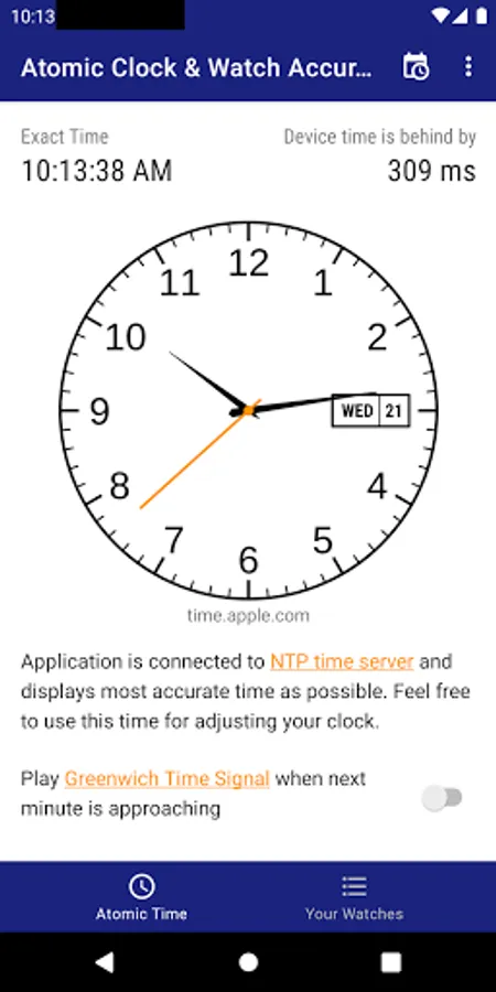 - This app is able to connect to NTP time servers and show you exact time