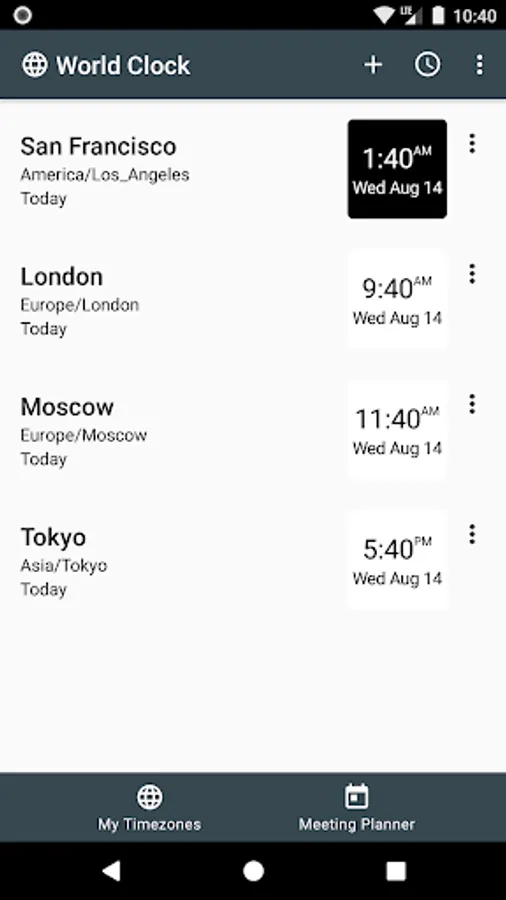 Do you want to know time in different country or city? This app is perfect world clock and meeting planner. You can use it as standalone app or as a widget.