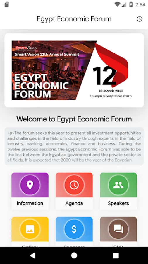 This year, the forum seeks to present all investment opportunities and challenges in the field of industry through experts in the field of industry, banking, economics, finance and business. Over the past twelve sessions, the Egypt Economic Forum was able to be the link between the Egyptian government and the private sector in all fields. It is expected that 2020 will be the year of the Egyptian industry to support the Egyptian government's plan to support industry, exports and support growth Egypt 2020