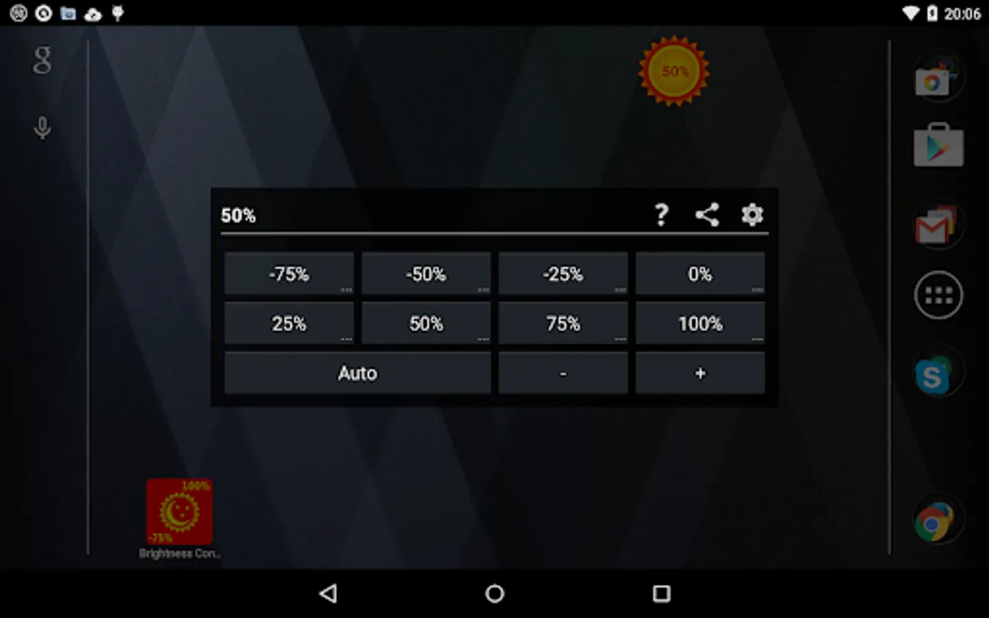 ● A convenient widget with customizable brightness controls: you can assign your custom brightness levels to the quick buttons and then adjust brightness in one click.