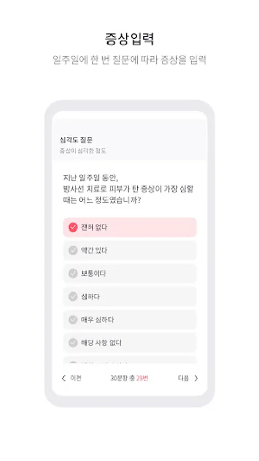 This mobile application collects and stores side effects that appear during cancer treatment in real time by applying PRO CTCAE (Patient-Reported Outcomes Common Terminology Criteria for Adverse Events), an international standard cancer patient symptom self-report tool for cancer patients. , reporting and analysis is possible.