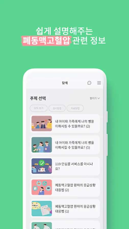 4. 폐동맥고혈압 환자라면 궁금한 컨텐츠를 체계적으로 정리했어요
